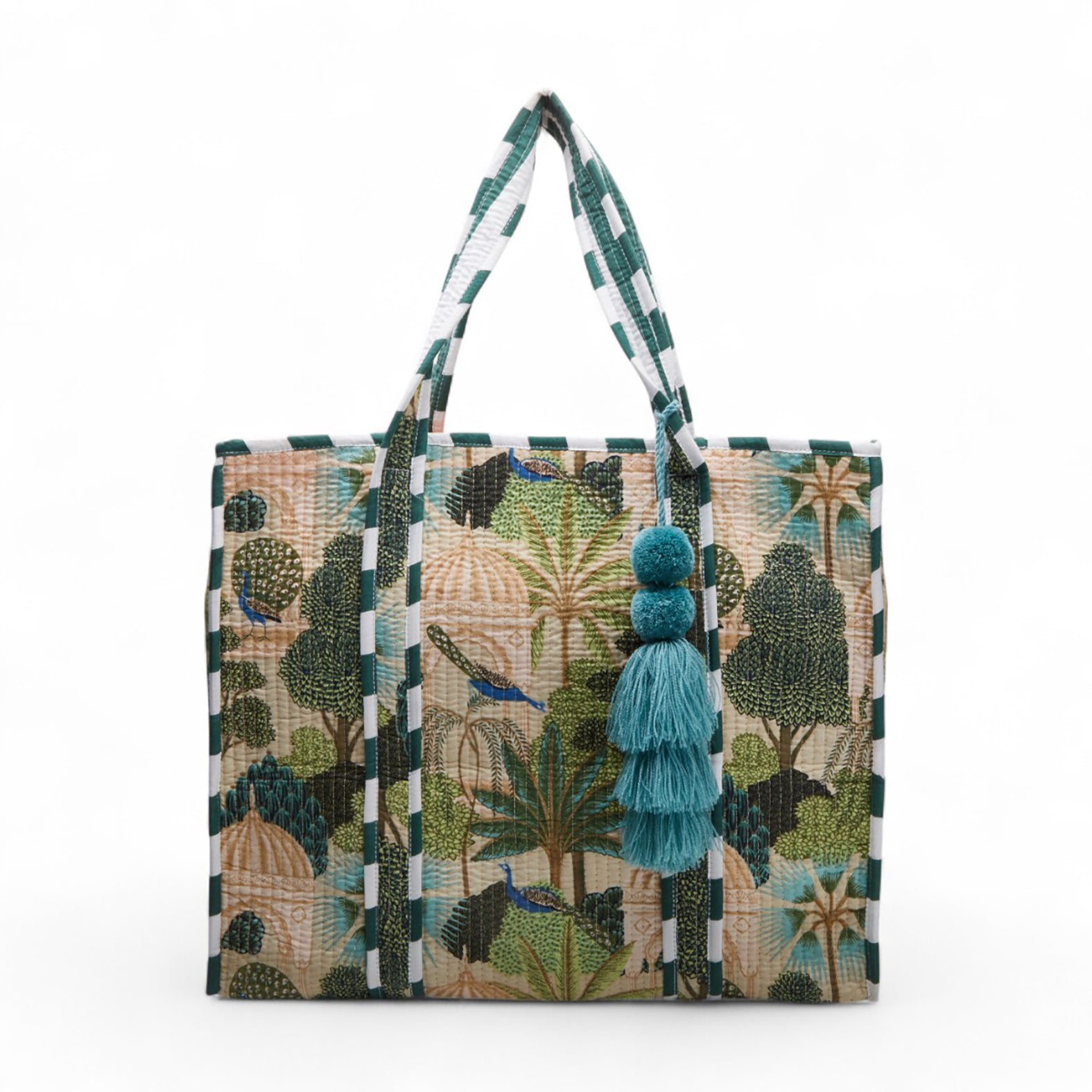 TOTEBAG DALIA ROSA/VERDE 100% COTTON